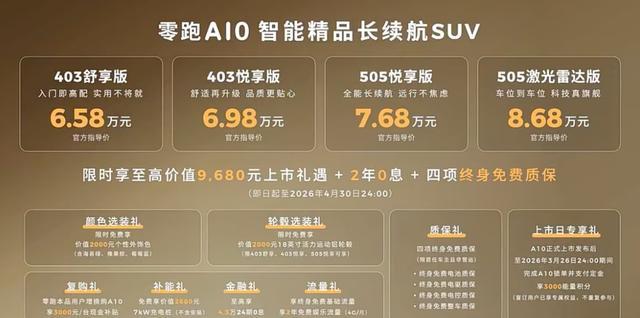 总的来说,零跑A10的上市,彻底打破了10万内纯电市场“价格与品质不可兼得”的行业困局。它没有因为亲民的定价,就在空间、智能、续航、安全上做出妥协,反而把激光雷达领航辅助、高通双旗舰芯片、505km长续航这些越级配置,全部带到了10万以内的价位。对于零跑来说,A10不仅是A平台的开篇之作,更是其布局全球市场、推动高阶辅助驾驶大众化普及的核心支点;而对于普通消费者来说,零跑A10的出现,让我们用不到10万的预算,就能买到一台全球标准、体验拉满的智能纯电SUV,这正是“科技普惠”最直观的体现。